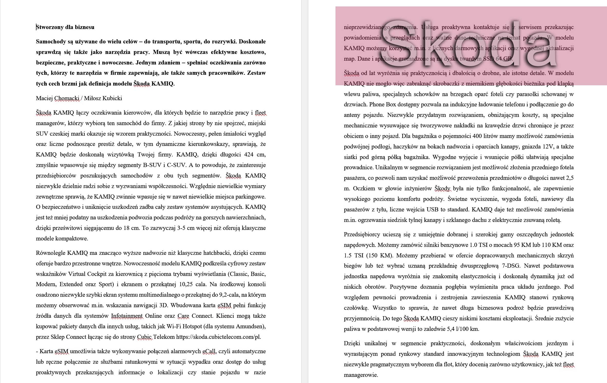 Przykładowe advertoriale mojego autorstwa